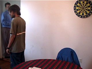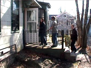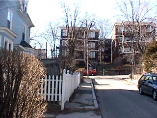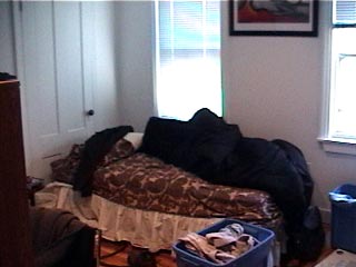 So we found a house. What a great relief, especially since it's so great. It's in Jamaica Plain which is south west of downtown Boston (check out the Jamaica Plain homepage). It's a great area and we're only a 10 minute from Jamaica Plain center and from the T (subway). We're also close to Jamiaca Pond, a nice place to walk or skate around. It's a three level apartment in a two-family house. The first two levels have hardwood floors and the third is carpeted. there are four bedrooms and 1.5 bathrooms. All of the lighting is recessed and every room has a dimmer for the lights. The first floor is a livingroom, diningroom, kitchen, and laundry room. There is a back staircase and a front staircase going to the second floor where there are two bedrooms and a huge bathroom. On the third floor there are two bedrooms with skylights. Off of the larger of these bedrooms there is a 1/2 bathroom.